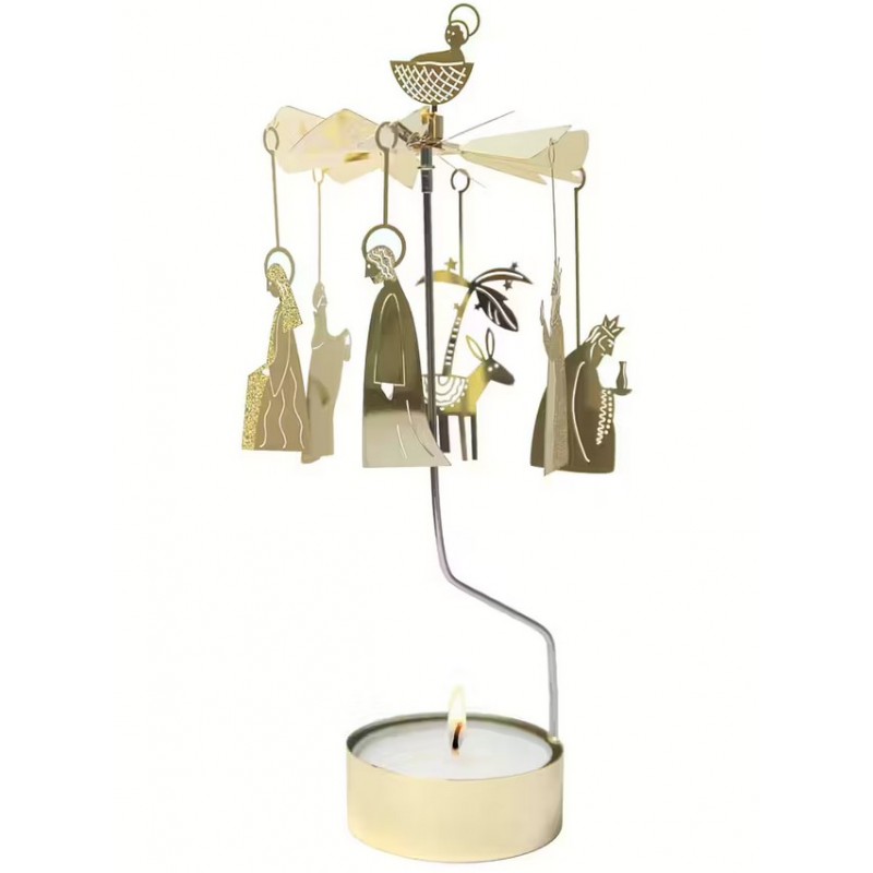 Allumez une bougie dans la base pour faire tourner le carrousel et voir Marie, Joseph, Jésus, l'âne et les Roi-mages s’animer dans une ronde gracieuse. Ce bougeoir crée une ambiance chaleureuse et réconfortante pour vos fêtes de fin d'année. Une décoration de Noël qui ravira les petits et les grands !