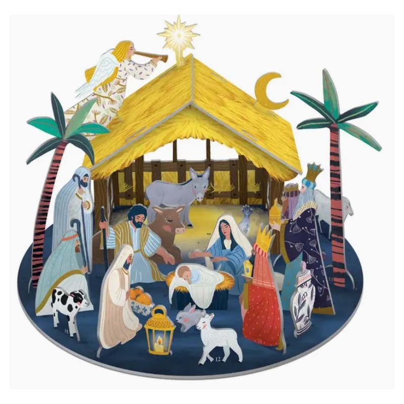 Un calendrier de l’Avent ludique à assembler jour après jour en décembre. Toutes les pièces sont livrées à plat ; il suffit de les détacher et de créer la scène de la naticité en 3D. Le Kit contient 3 feuilles en carton certifié FSC® issu de sources durables, et 24 éléments détachables. Ce calendrier est réutilisable chaque année.