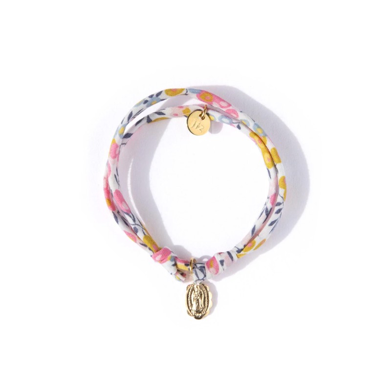 Ce bracelet associe la fraîcheur du tissu Liberty à la spiritualité de la médaille Vierge Marie. Il peut être porté en toute occasion : au quotidien, lors d’un événement spécial, ou comme cadeau plein de sens pour un être cher.