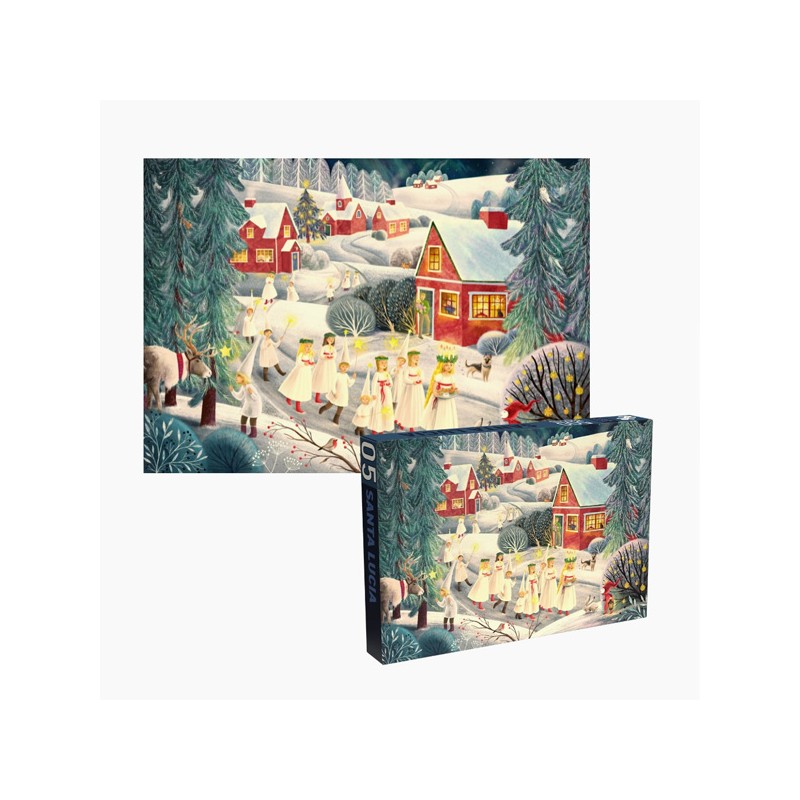 Découvrez l’univers lumineux de Sainte Lucie, un puzzle de Noël plein de charme et d’histoire. Inspiré des processions traditionnelles du 13 décembre en Scandinavie, il symbolise le retour de la lumière après l’obscurité de l’hiver.