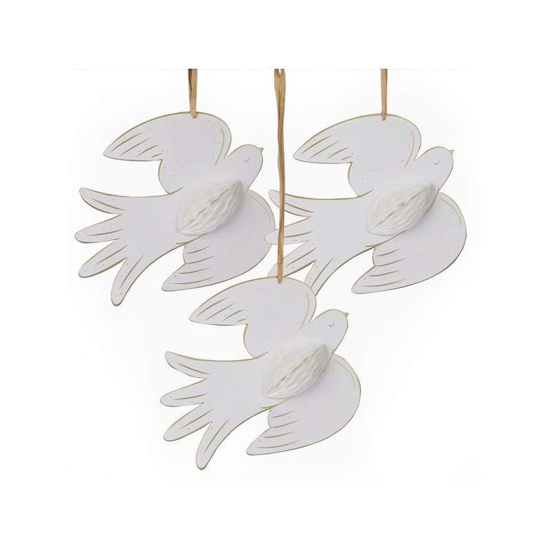Chaque colombe présente un joli effet nid d’abeille blanc qui se déploie facilement pour créer du volume et une ambiance festive.