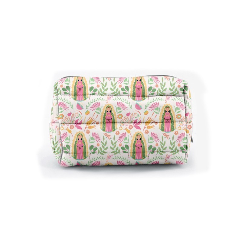 Emportez un symbole de foi et de douceur partout avec vous grâce à notre pochette matelassée Notre-Dame de Guadalupe.