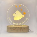 Fabriquées avec soin en bois et plexiglass, nos créations diffusent une lumière douce et réconfortante. Un cadeau idéal pour un baptême, une communion ou pour embellir un coin prière.