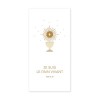 Un signet avec un marquage or à chaud représentant le corps du Christ lumineux accompagné d’une citation ! Ou encore un signet tout en douceur, sur fond bleu pâle avec son petit communiant tenant dans ses mains une croix, symbole qu’il a reçu Jésus dans son cœur pour la première fois. Pour les adeptes des signets plus graphiques, cette dernière carte de méditation est aussi haute en symbole ! Trois styles différents mais sensationnels pour ce grand jour !