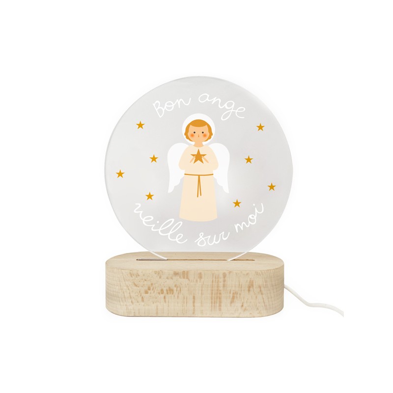 Cette veilleuse chrétienne Ange Gardien diffuse une lumière douce et rassurante, parfaite pour une chambre d’enfant ou un coin prière. L’illustration représente un ange gardien, messager de Dieu, avec la prière gravée : « Bon ange, veille sur moi ». Un rappel tendre et protecteur de la présence de Dieu au quotidien.